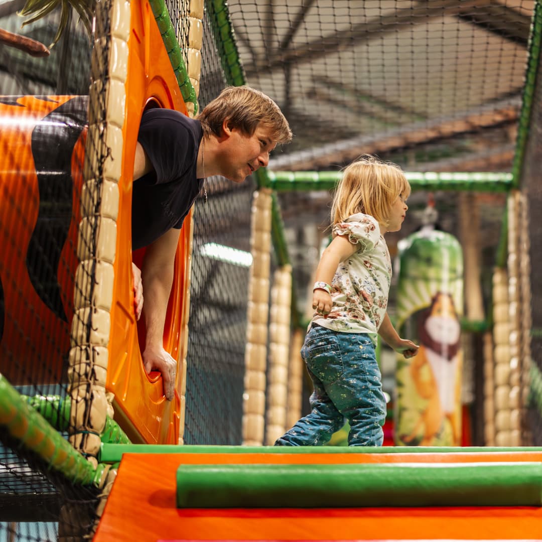 Hos Leo’s Jungle er det tusenvis av kvadratmeter med lekeområder hvor barna kan løpe, leke og utforske. Det beste av alt? De beveger seg uten engang å tenke over det, med et gjennomsnitt på 11 000 skritt per besøk! Våre attraksjoner passer for alle aldre – klatre på vulkaner, dykk i ballbassenget eller skli ned et fossefall. Kjøp billetten til våre lekeland online for å sikre deg plass – og det er billigere også! Og ikke glem å feire barnebursdagen hos oss – den ultimate drømmefeiringen!