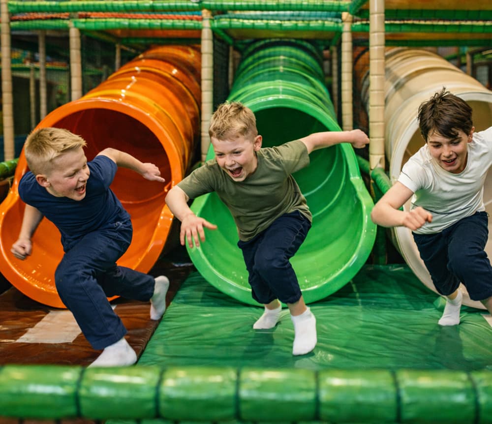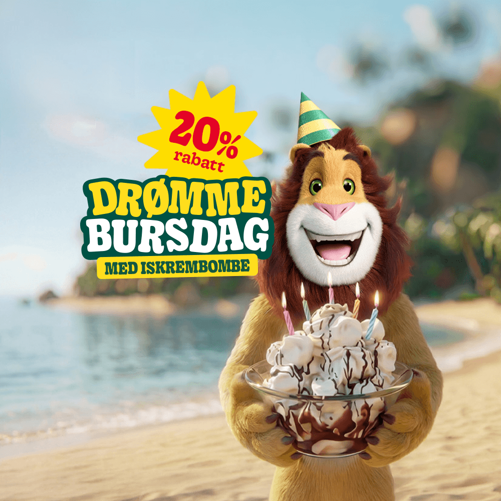 Hos Leo’s Jungle er det tusenvis av kvadratmeter med lekeområder hvor barna kan løpe, leke og utforske. Det beste av alt? De beveger seg uten engang å tenke over det, med et gjennomsnitt på 11 000 skritt per besøk! Våre attraksjoner passer for alle aldre – klatre på vulkaner, dykk i ballbassenget eller skli ned et fossefall. Kjøp billetten til våre lekeland online for å sikre deg plass – og det er billigere også! Og ikke glem å feire barnebursdagen hos oss – den ultimate drømmefeiringen!