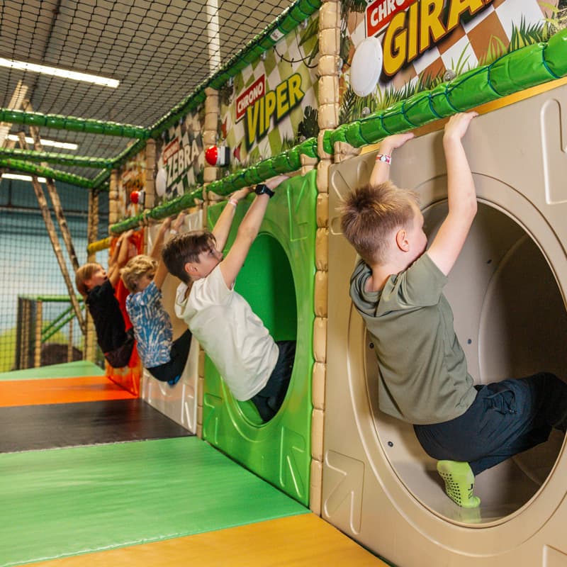 Oppmerksomhet alle konkurranseglade! Inviter venner og familie til et fartsfylt race ned vår populære jungelsklie! Racing Slide er en av våre mest adrenalinladede og populære attraksjoner, hvor du og barnet ditt kan konkurrere mot hverandre i en rask nedfart på sklien.