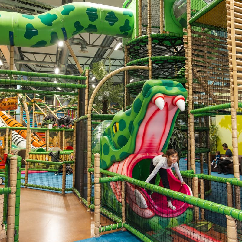 Er du klar for et fantastisk eventyr med barnet ditt? Ta en tur i vår svingete slange-sklie. Redd for slanger? Vi kan garantere at slangen i Leo’s jungel ikke biter!