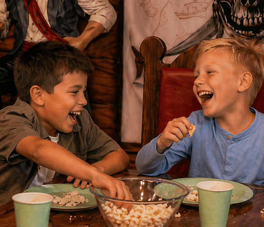 That’s exactly how a kids party should feel. A place to move, imagine and dive straight into the fun. With a pirate theme at Leo’s, the adventure starts right away – and continues throughout the entire celebration.