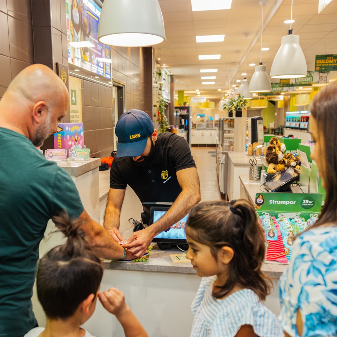 Kortet er ladet med 4 barnebilletter til barnet ditt hos Leo’s, uansett dag og tid.