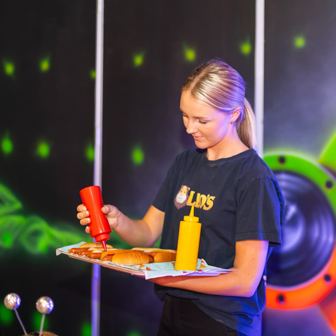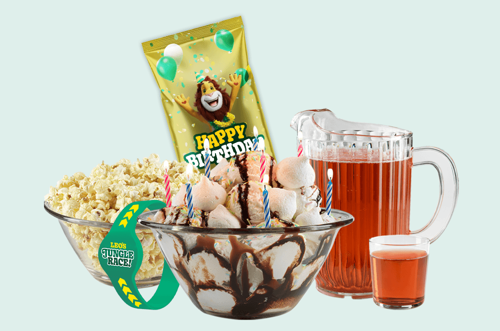 Bursdagsverten sørger for at bursdagen går knirkefritt. IIskrembombe serveres med bursdagssang og verten fyller på Leo’s jungelsaft og popcorn ved forespørsel. Imidlertid er de ikke til stede i rommet hele timen, og maten vil bli servert i rommet.