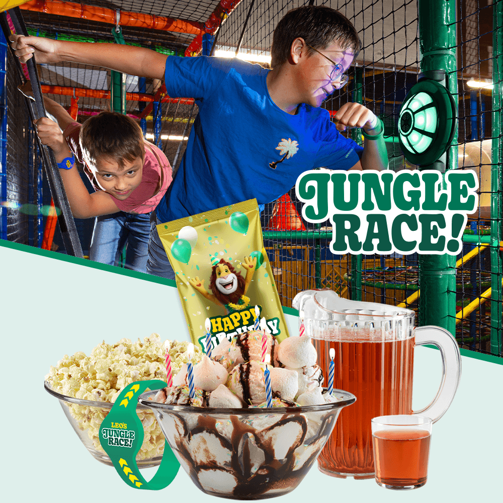 Alle bursdagsgjestene får også et Jungle Race-armbånd og kan delta i et fartsfylt eventyr i lekelandet. Løp, finn checkpoints og samle poeng sammen før tiden går ut. Poengene vises direkte på resultattavlen, og etter racet venter en morsom overraskelse til alle deltakerne. Bursdagsverten sørger for at bursdagen går smidig. Isbomben serveres til tonene av en bursdagssang, og bursdagsverten fyller ved behov på med forfriskninger. Bursdagsverten er derimot ikke i rommet hele timen, og hvordan maten serveres varierer avhengig av lekeland og pakke, noe som spesifiseres når du velger pakke i bestillingsflyten.