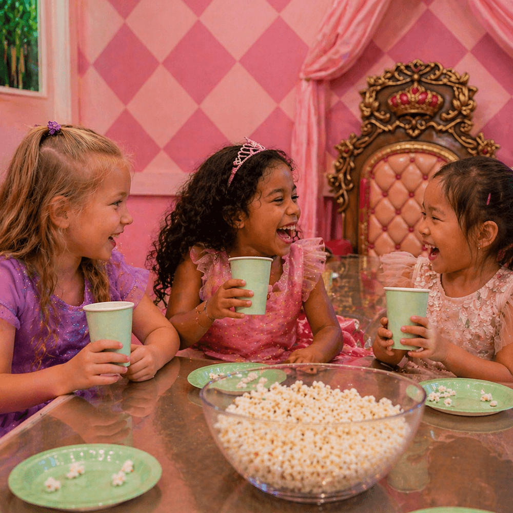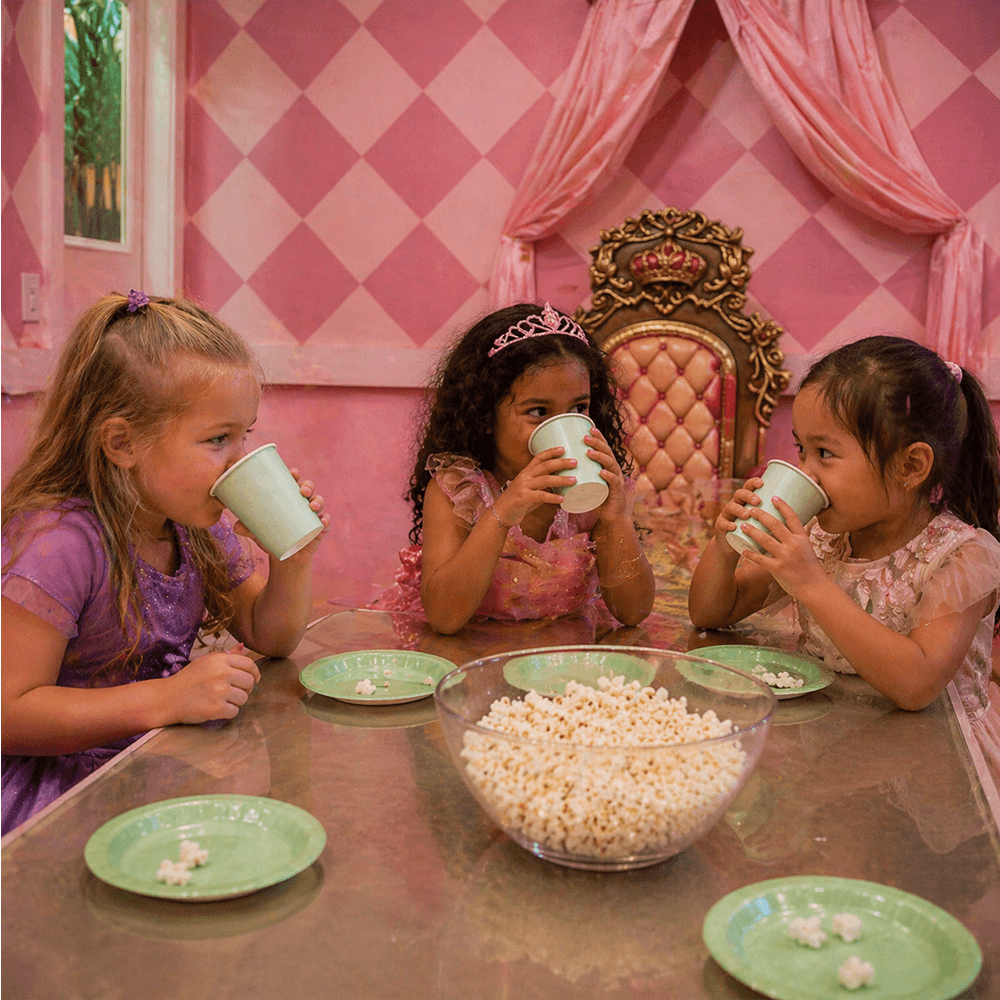 Når døren åpnes, venter et ferdig bursdagsrom. Det er dekorert med prinsessetema, bordet er dekket og alt er klart for at dere kan starte feiringen med én gang. Opplegget er enkelt og gjennomtenkt. Du slipper å planlegge detaljene og kan heller fokusere på å være til stede sammen med barnet ditt.