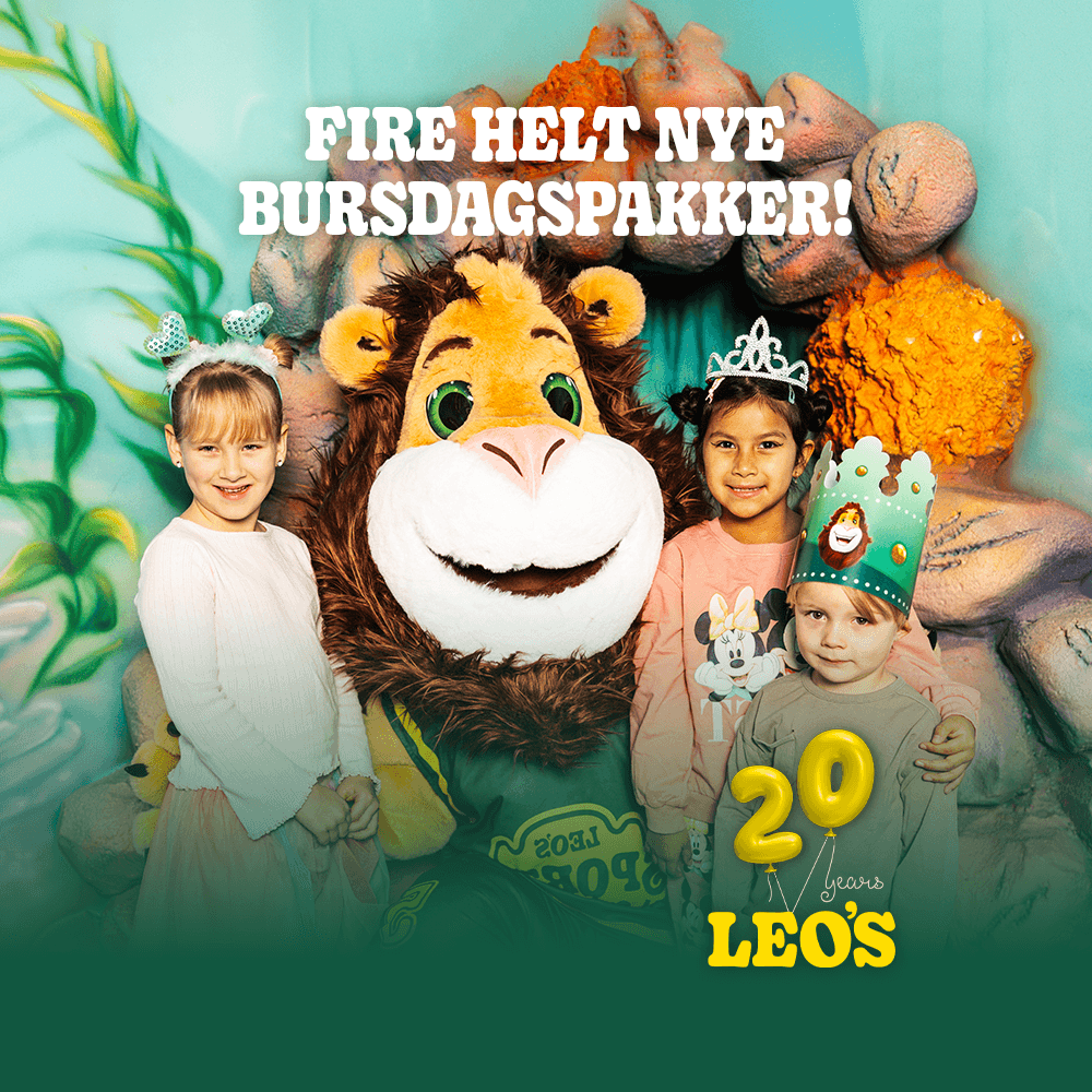 Is it time to celebrate someone’s birthday? At Leo’s, we have extensive experience in organizing parties! Choose from different themes for party rooms, and we’ll set up juice and popcorn and whatever else you desire from our popular party packages. A party at Leo’s is a lively experience where play on thousands of square meters is always included. The obvious choice for all kids with energy to spare who love to play and have fun – and for you as a parent who wants to avoid the hassle of fixing, shopping, and planning. Book the birthday party that kids will love – a real dream party for everyone!