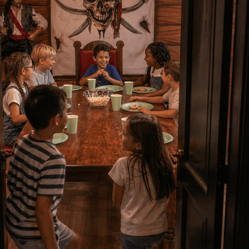That’s exactly how a kids party should feel. A place to move, imagine and dive straight into the fun. With a pirate theme at Leo’s, the adventure starts right away – and continues throughout the entire celebration.